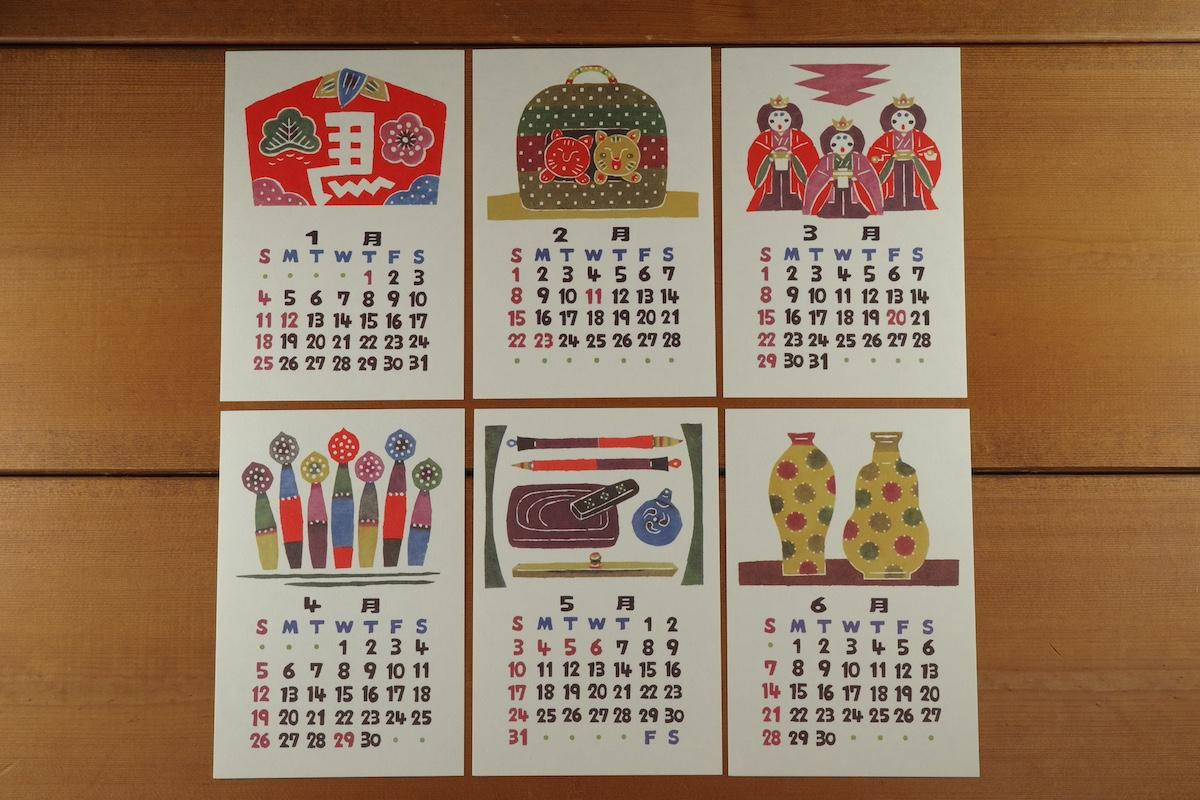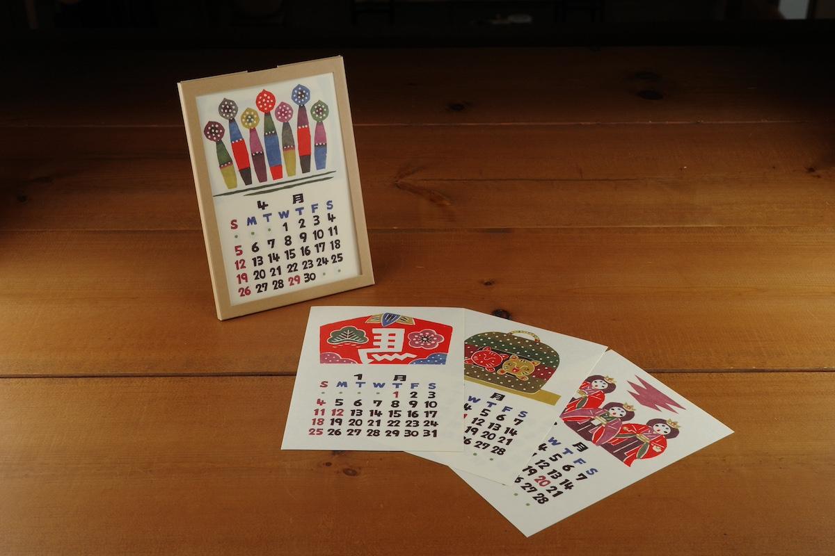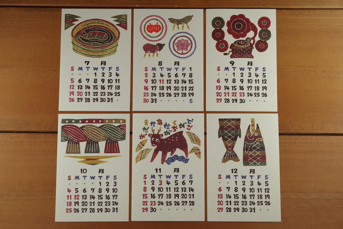 型染工・小田中耕一さんが、季節の風物や手仕事をモチーフに、型染に仕上げたカレンダーです。
